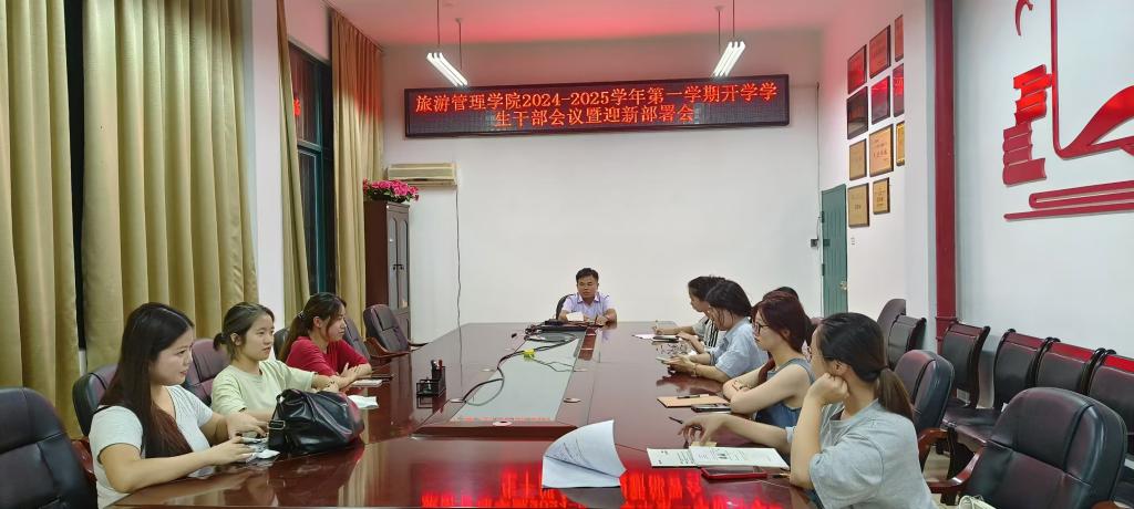 9月2日晚上,在求真楼D区105会议室,旅游管理学院召开期初团学工作会议暨迎新工作部署会,学院团委学生会主要干部参加了会议,会议由团委书记钟春果主持。