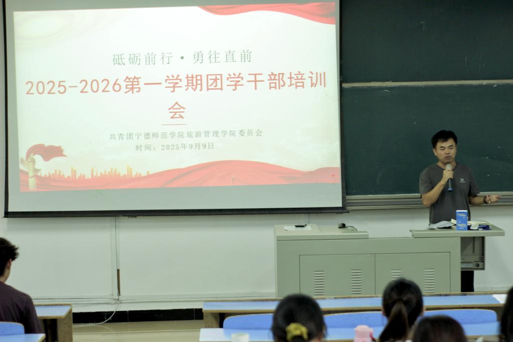 为进一步提升旅游管理学院团学干部的业务能力、团队协作能力与政治思想素养,同时着力增强组织的凝聚力与协同性,实现合作共赢。旅游管理学院于2025年9月9日下午在求真楼BA101召开2025年秋季新学期团学干部工作培训会,为学院团学工作提质增效筑牢根基。此次培训会由团委书记钟春果老师主持。班级团支书、组织委员、宣传委员、学院团委学生会工作人员参加培训。