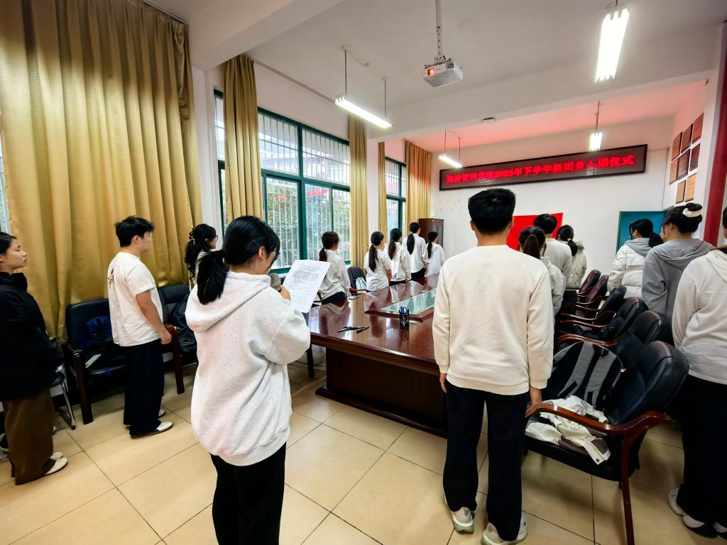 在优秀团员代表陈莎的带领下,全体新团员面向团旗,庄严宣誓“我志愿加入中国共产主义青年团,坚决拥护中国共产党的领导……”铿锵有力的誓言响彻全场,展现出新时代青年听党话、跟党走、矢志奋斗的坚定信念。