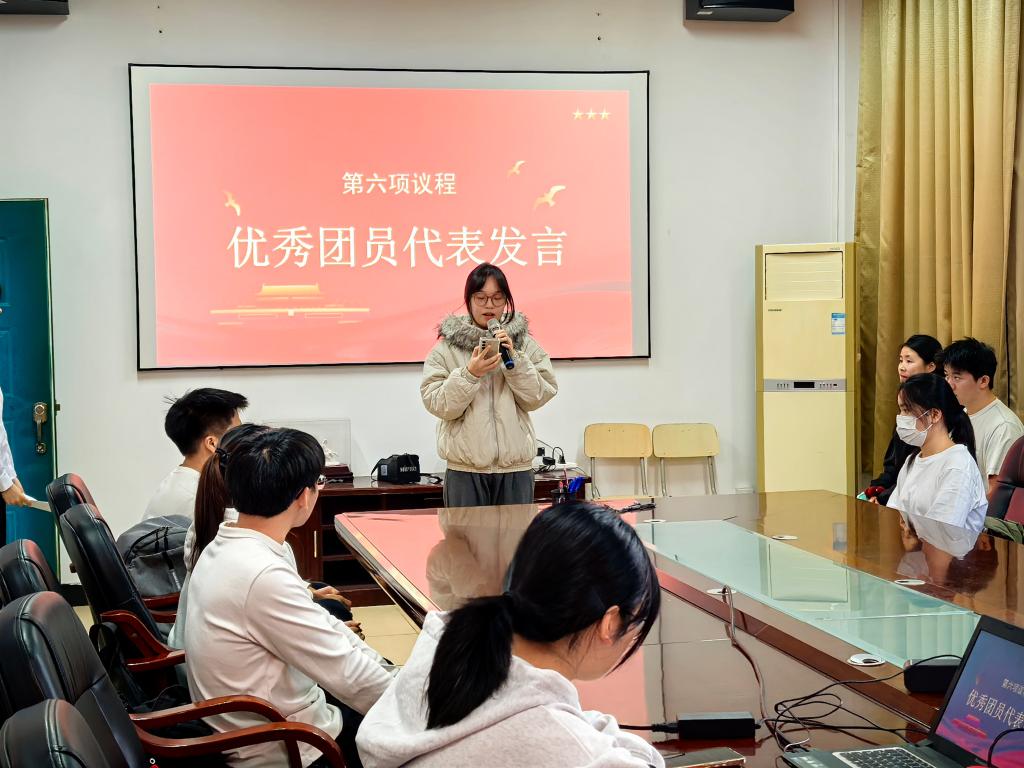 新团员代表李心怡在发言中表达了加入团组织的激动之情与成长感悟,承诺将以团员标准严格要求自己,在学习和实践中不断提升自我、锤炼品格。优秀团员代表苏雪婷结合自身经历,鼓励新团员以先锋为榜样,在青春的赛道上跑出最好成绩。