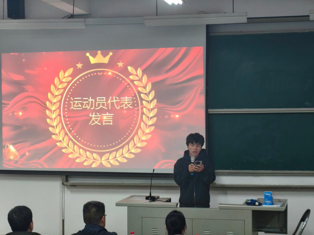 运动员代表钟林金同学、吴建涛同学先后发言。他们回顾了备赛和参赛过程中的点点滴滴,分享了在清晨与黄昏中反复训练、在汗水与掌声中不断超越自我的成长历程,表示运动会不仅磨炼了意志、锤炼了体魄,更让他们在团队协作中感受到了集体的温暖与力量。
