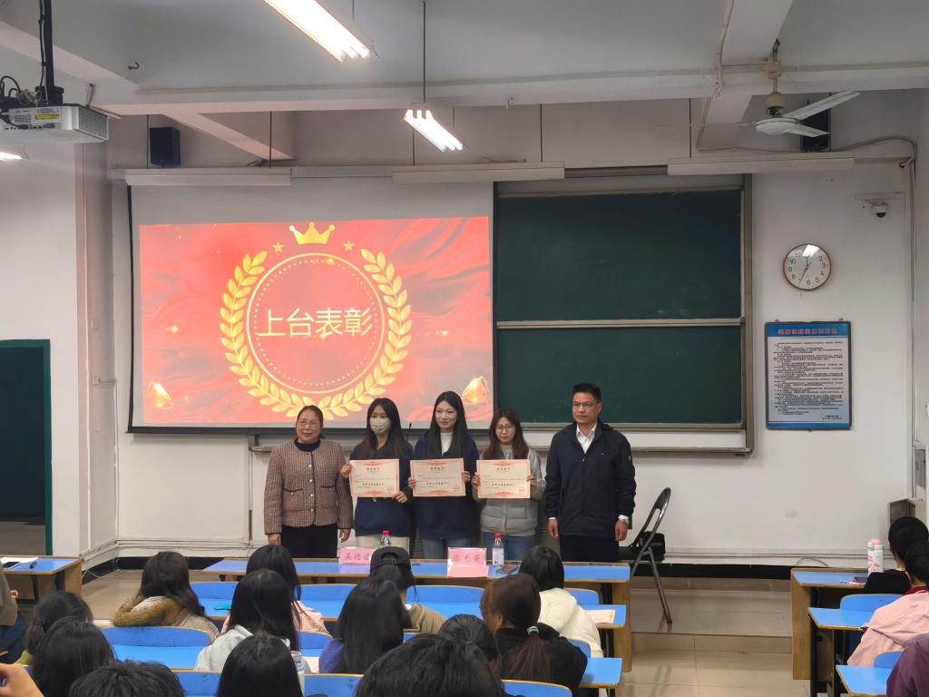 在热烈的掌声中,大会进入表彰环节。学院对王慧棱等27位在本次运动会中表现突出的优秀运动员予以表彰,他们用优异的成绩和不懈的努力,为学院争得了荣誉。同时,学院对在太极拳表演中荣获二等奖、在啦啦操表演中荣获三等奖的代表队员,以及在本次运动会筹备与组织过程中表现突出的“辛勤服务标兵”和“宣传工作先进个人”进行了集中表彰。获奖个人和集体依次上台领奖,现场掌声此起彼伏,气氛热烈而温馨。