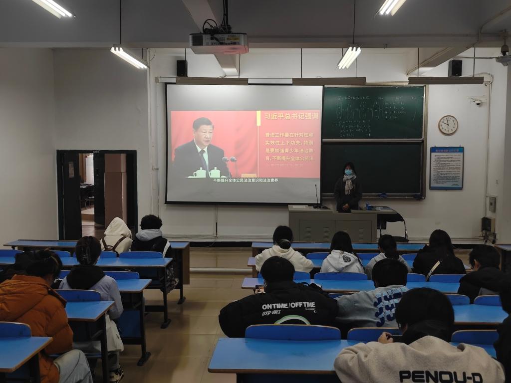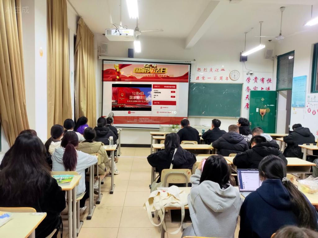 活动中,各班围绕“宪法晨读”“宪法卫士知识学习”“观看全国少年普法直播”等内容展开。在宪法晨读环节,各班共同诵读宪法原文,体会宪法的深邃内涵和强大力量,引导学生深入理解宪法的核心地位与时代意义。在“宪法卫士”网络知识学习活动中,依托线上平台开展学习打卡与交流讨论,提升学习的互动性与实效性。12月4日国家宪法日当天,学院组织学生集中观看“全国少年普法”直播,进一步强化对宪法权威的直观认识。