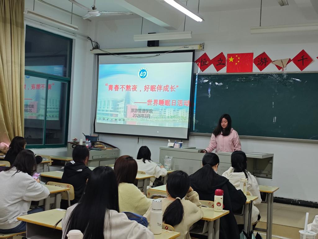 3月21日是世界睡眠日,为引导同学们关注睡眠健康,培养良好作息习惯,旅游管理学院积极响应学校号召,组织各班级开展了“青春不熬夜,好眠伴成长”主题班会活动。