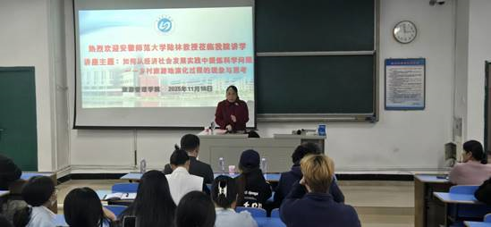 11月18日,安徽师范大学陆林教授应邀到访宁德师范学院旅游管理学院,为师生带来一场题为《如何从经济社会发展实践中提炼科学问题——乡村旅游地演化过程的现象与思考》的学术盛宴。张光英院长主持本次活动,师生代表齐聚聆听。陆林教授以其深厚的学养,引导大家沉浸于乡村旅游地演化的现象观察与理论思考之中,现场学术氛围浓厚。