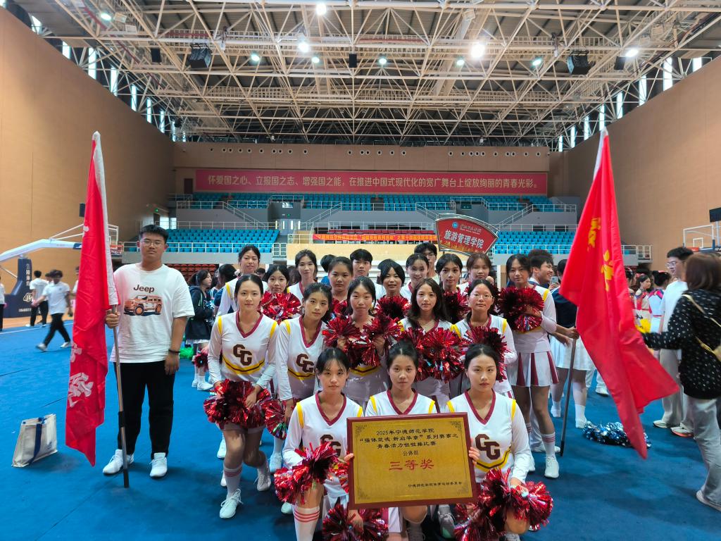 此次赛事,啦啦操队不仅收获了荣誉,更在训练与比赛的过程中深化了团队凝聚力。每一次的配合失误、每一次的重新开始,都让队员们更加懂得信任与协作的意义。这份在舞台上绽放的活力与激情,也将成为校园文化中一抹亮丽的色彩,激励着更多同学在自己热爱的领域勇敢追梦、绽放光彩。(文/图:李书涵)