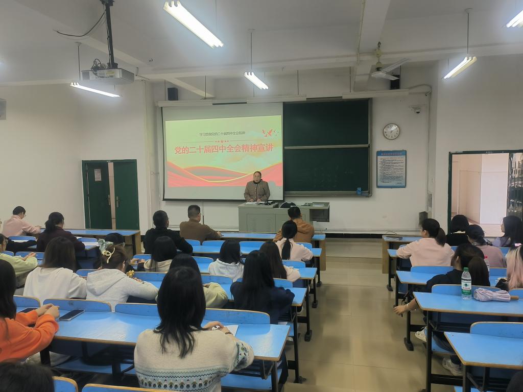 12月2日,旅游管理学院党委书记、院长张光英在求真楼A101教室为学院教职工及学生代表作党的二十届四中全会精神专题宣讲,推动全会精神在学院落地生根。