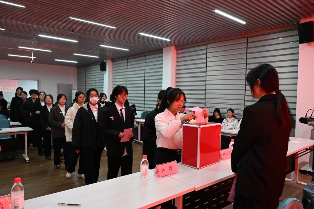 会议在雄壮的国歌中拉开序幕,学院团委副书记施欣怡做工作报告 ,她全面回顾总结了2025年团学工作,并指出工作存在的不足,对2026年工作提出建议,会议顺利完成学院团委委员补选工作。依照《团章》规定,会议以无记名投票方式差额补选戴鑫彬、曾美霞、王聪、刘欣茹、万晨鑫、叶剑英、黄婷等7人为第一届委员会委员。经等额选举,戴鑫彬同学当选为团委副书记。新当选委员表示将牢记嘱托 感恩奋进,在服务学校高质量发展中书写青春篇章,以实干担当服务青年成长成才。